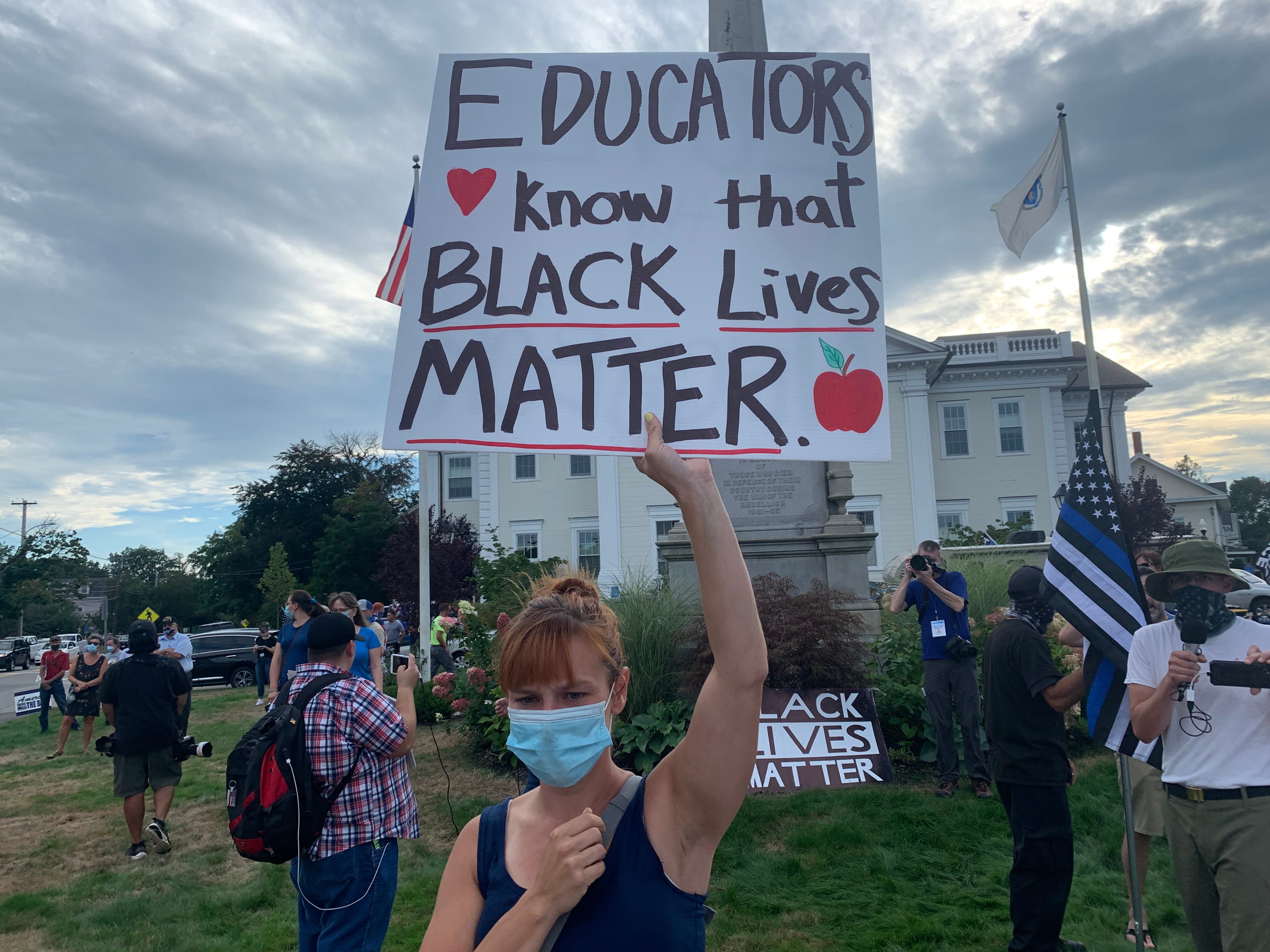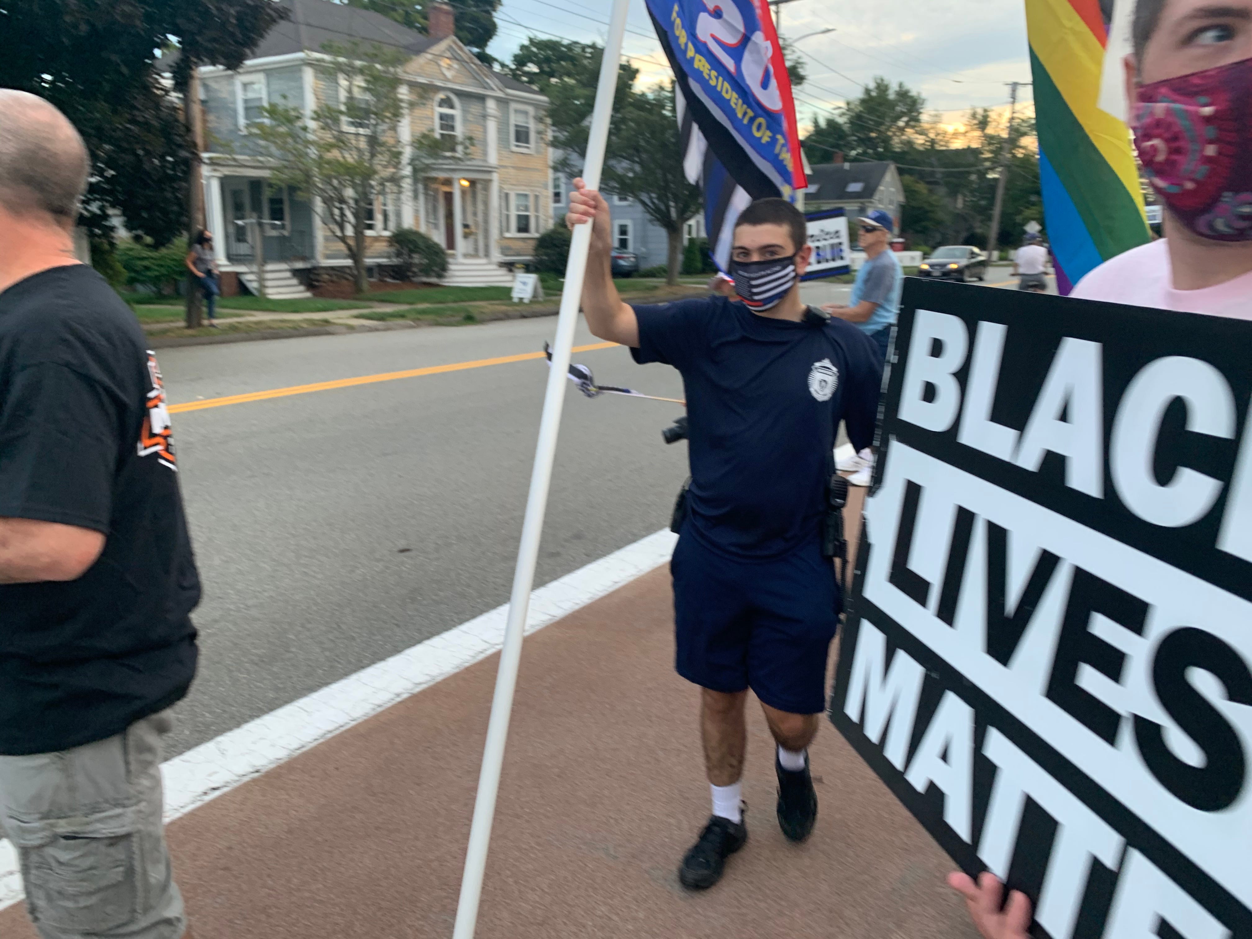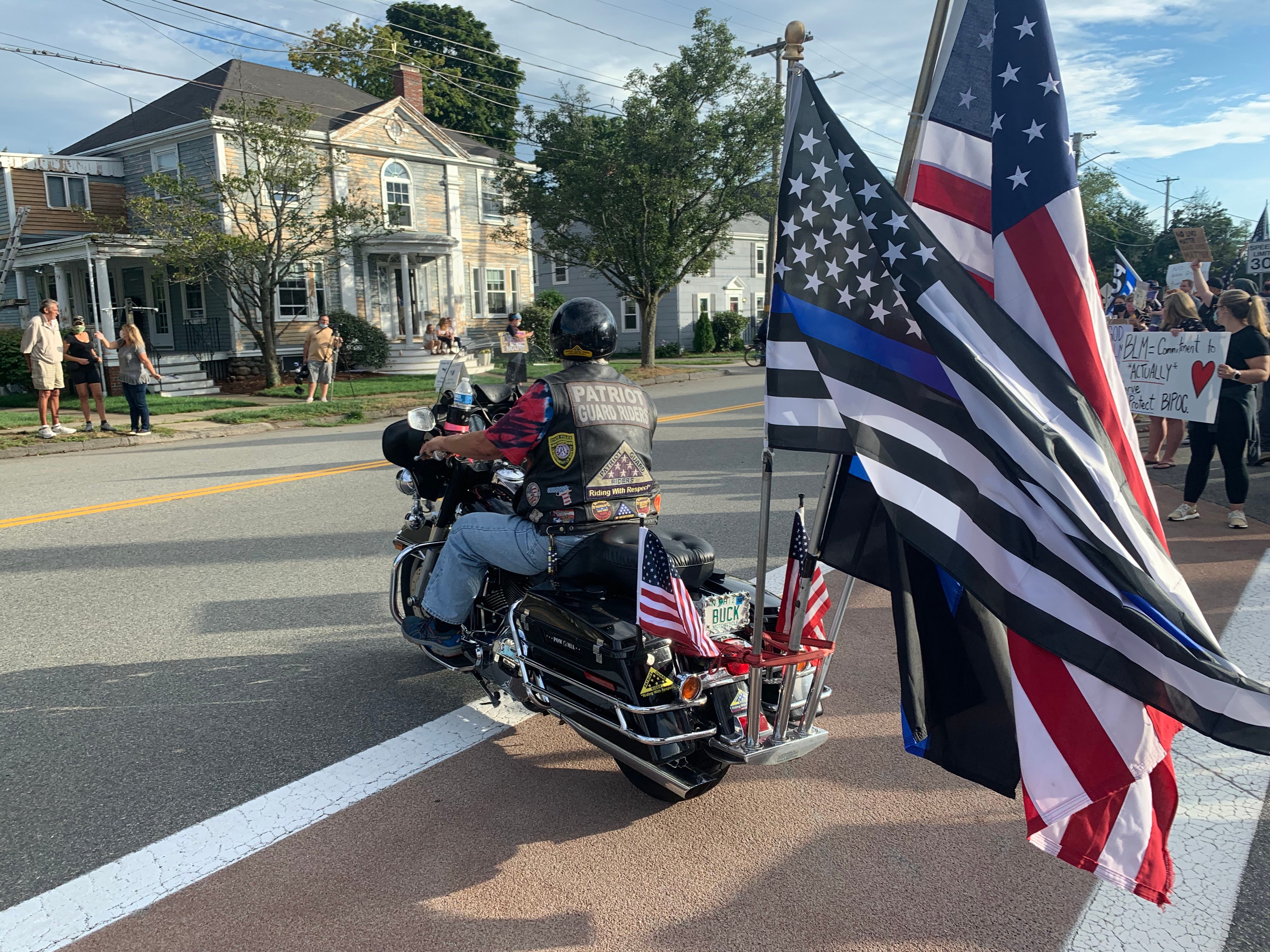 “Back the Blue” and “Black Lives Matter” protested outside of Danvers Town Hall on Thursday evening after a town manager decided to remove “Thin Blue Line” flags off of Danvers Fire trucks.