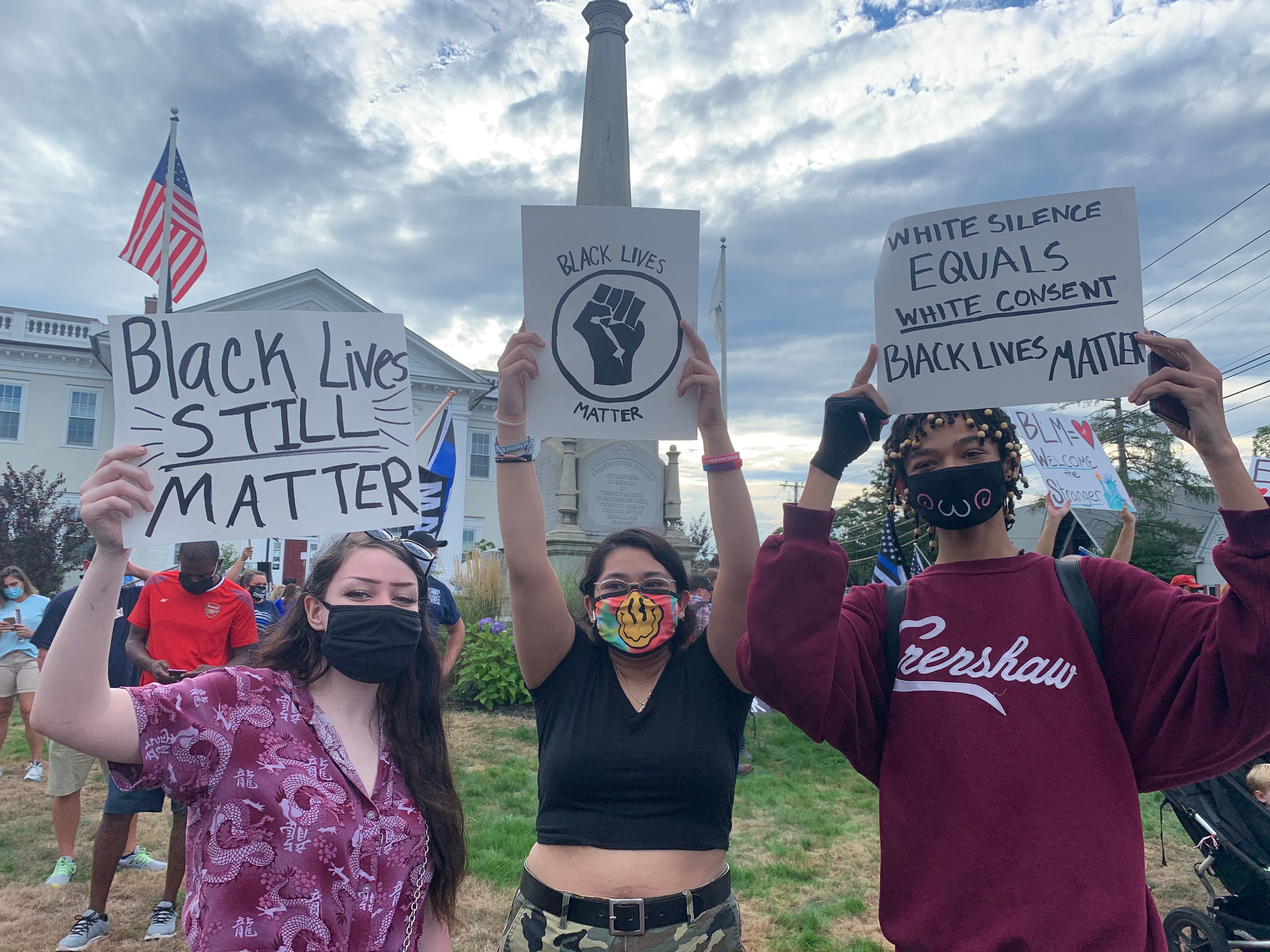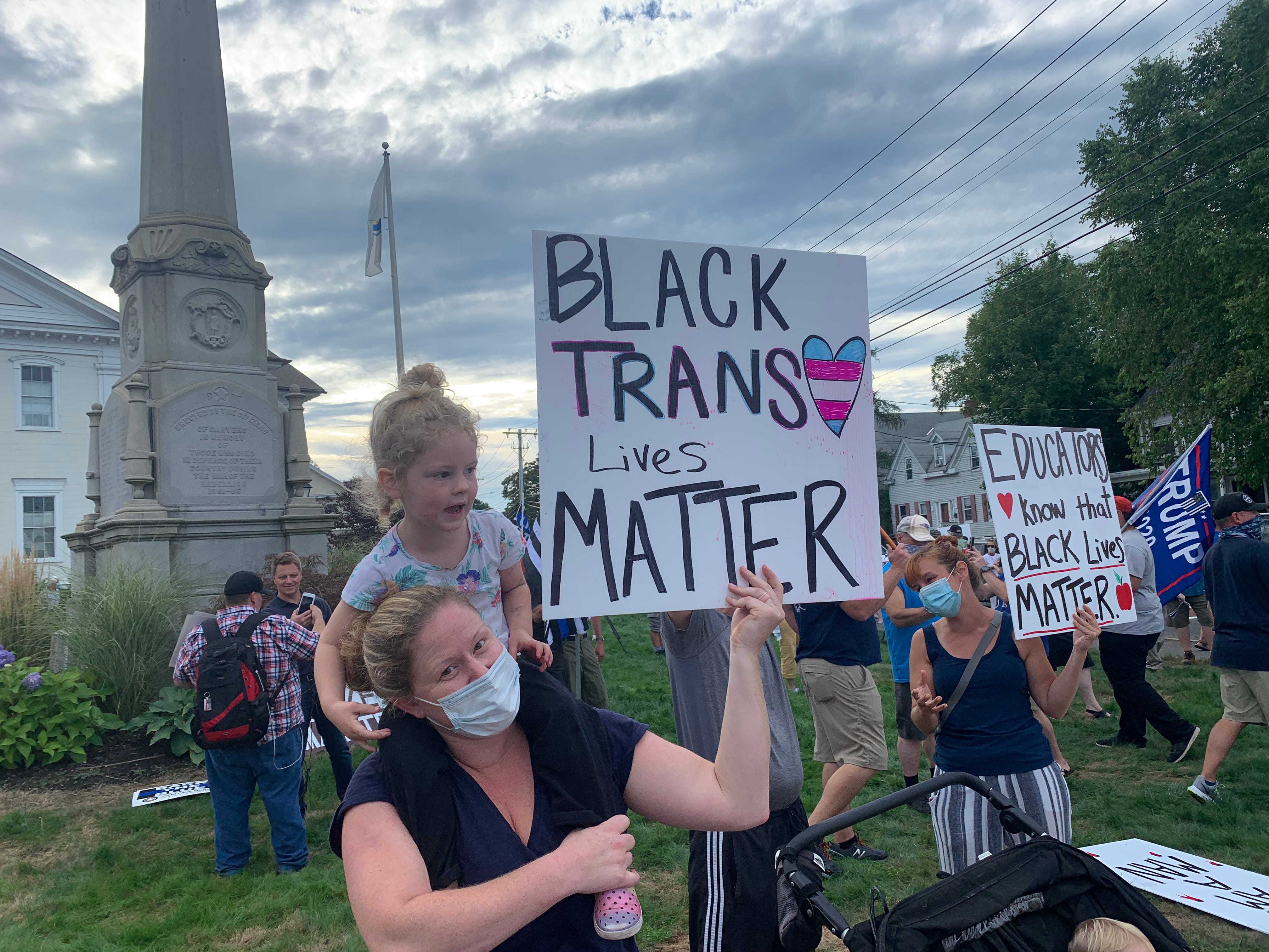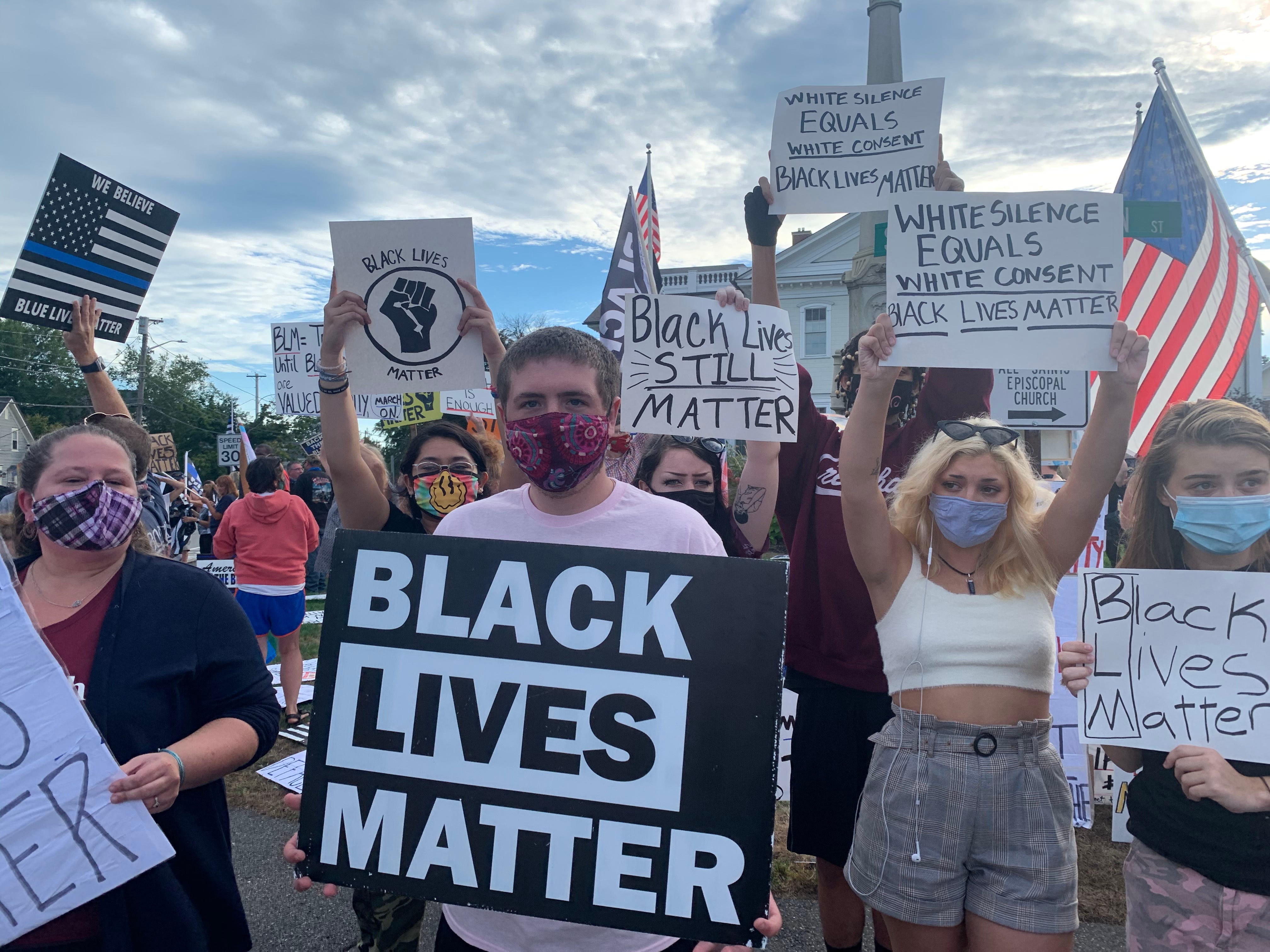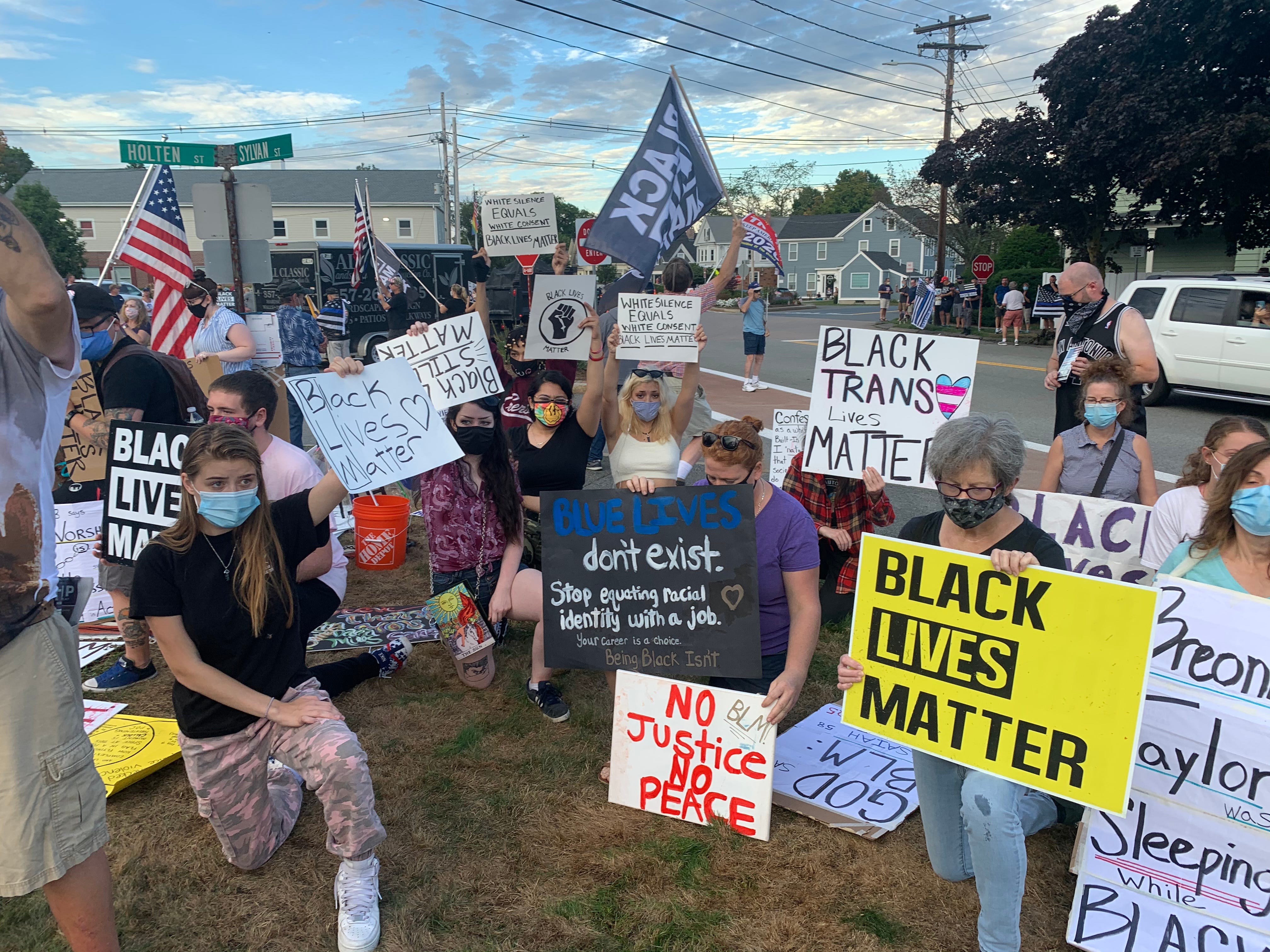 “Back the Blue” and “Black Lives Matter” protested outside of Danvers Town Hall on Thursday evening after a town manager decided to remove “Thin Blue Line” flags off of Danvers Fire trucks.