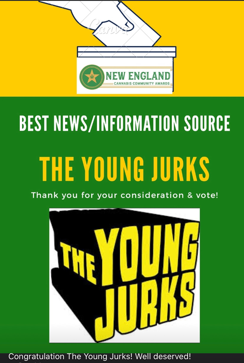 We got nominated four times for this year’s New England Cannabis Convention Community Awards which will be held at the Hynes Convention Center in March, two nominations for The Young Jurks “best podcast” & “best news source” and I’m (Mike Crawford) also nominated for “best cannabis activist in Massachusetts” as well as for a “lifetime achievement” award! Even more exciting is how many of our past guests, writers, and community that we write about in DigBoston & midnightmass are also nominated! Please go vote for us and them! Thank you Ellen Brown for this graphic!