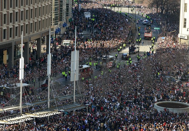 Which is clearly backwards, James Aloisi of Commonwealth Magazine summed it up best with this headline, “Weekday sports victory parades have to stop, If the Patriots want to celebrate, let the team foot the bill”.