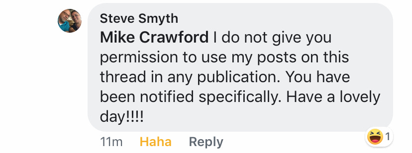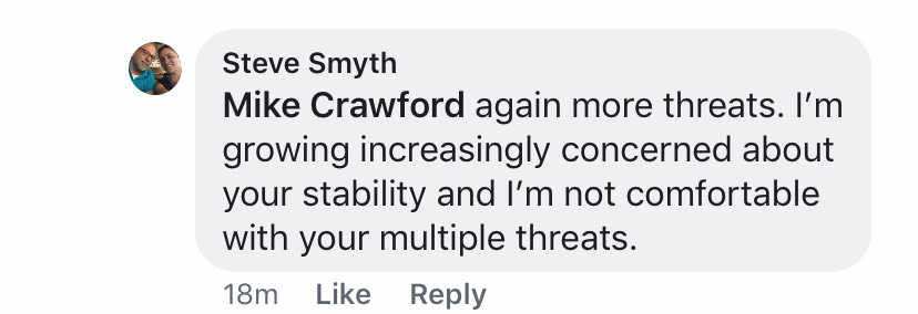 Smyth then got really bothered, bullying me, attacking a publication I’ve written for along the way and then pretending I threatened him and other attacks of my character for simply asking questions, and telling him to “look me up” that his “comments were a public record.”